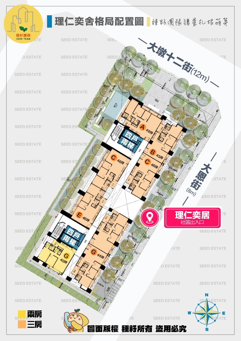 格局規劃:兩房、三房(40~49坪)